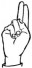На ћирилици написано АНДЈЕЛИНА УГРИЦА састоји се из 15 слова [?]. Исписано ћириличном једноручном азбуком за глувонеме: